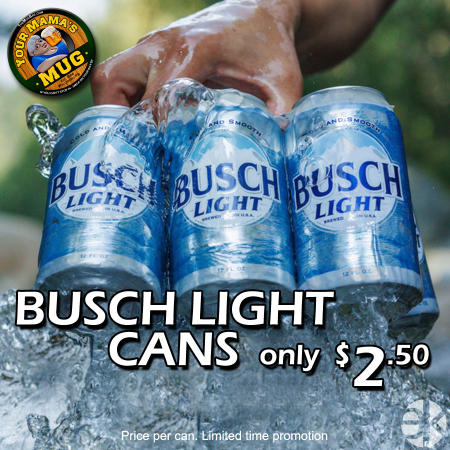 Save some dough with our special on Busch Light Cans – only $2.50! Price per can. Limited time promotion.